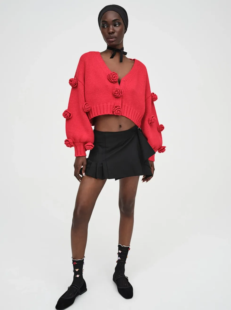 The rosette trend is here to stay! Layer this sweater over your fave top, or wear alone for a sculptural look.