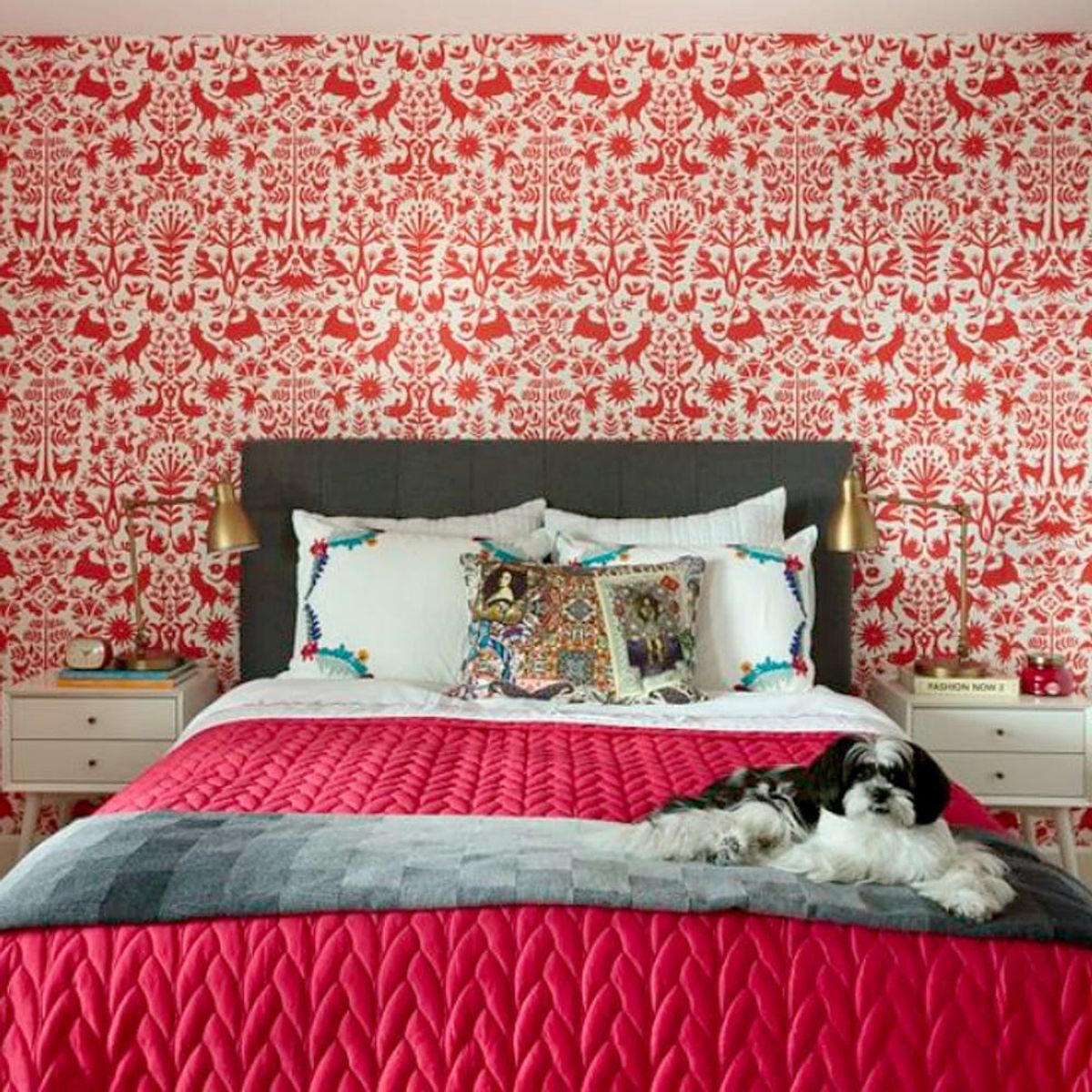 6. Wallpapered Red: When in doubt, go for patterns. A lively wallpaper like this adds a touch of fun to a red statement wall. (via Lynne Parker Designs)
