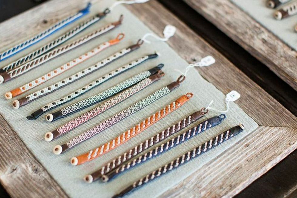 Mill Valley-based Erika Honig was there with her line of Scandinavian jewelry, too. We were seriously in awe of her gorgeous and rustic Nordic goods. She uses pewter thread coiled around nylon thread to create her braided designs. Then, she sews the braids by hand into soft reindeer (!) hide. Too cool!