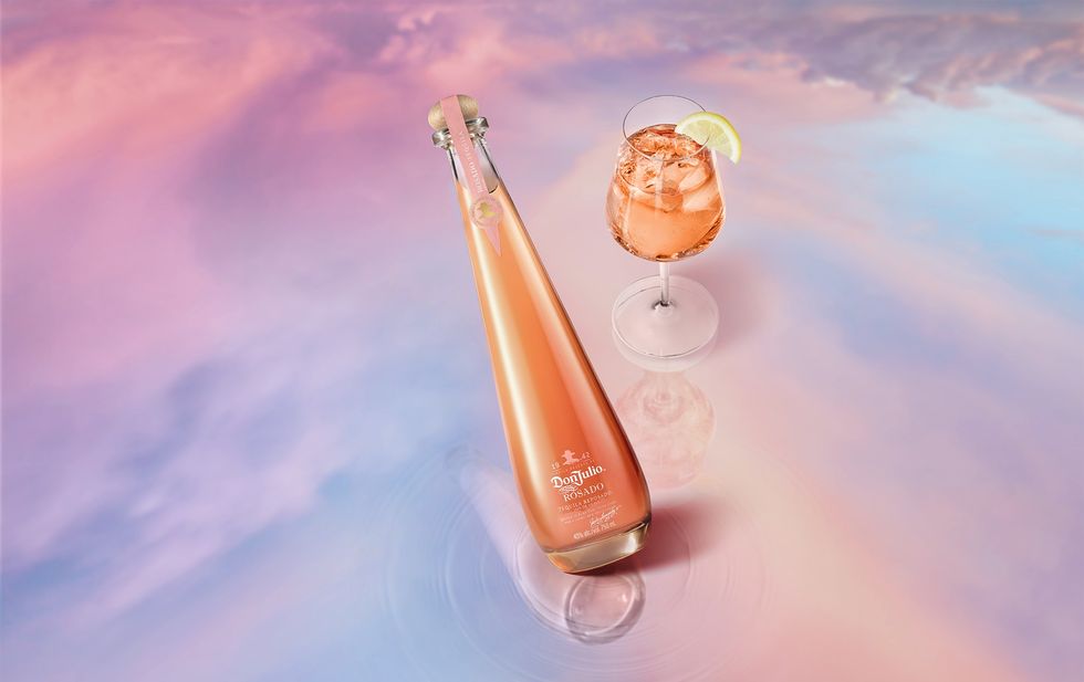 - Add 1.5 oz. of Tequila Don Julio Rosado to an ice-filled coupe glass. Top with a splash of sparkling water.