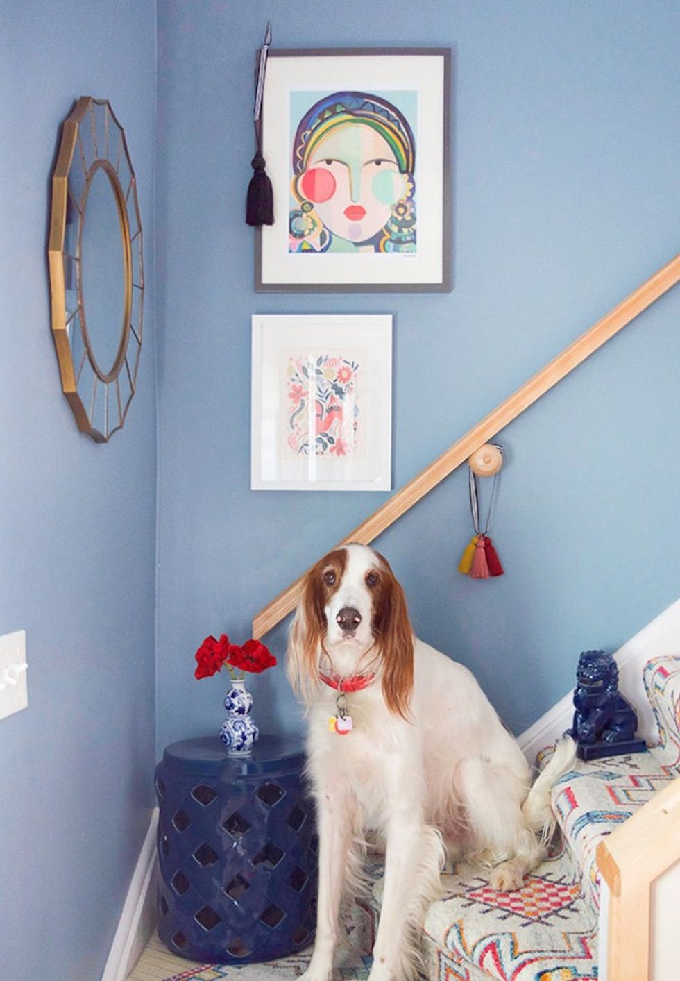 9. Removable Stairway Runner: Totally transform your staircase with a runner and some well-placed double-sided carpet tape. You can hide years of steps and dirt with a nice rug, and the best part is that you can take it with you when you move. (via PMQ for Two)