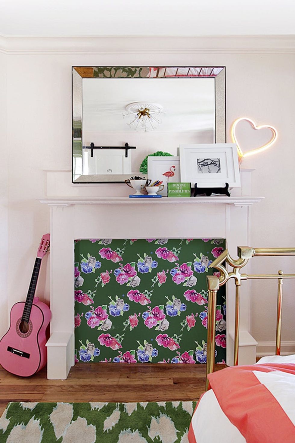 10. Wallpaper Fireplace Cover: You scored big with a fireplace and mantel, but if it doesn’t work you’re left with a gaping hole in your living room. Cut some particle board and cover it with wallpaper for a chic upgrade. And feel free to go crazy (read: spendy) with the pattern since it’s such a small area. (via The Hunted Interior)