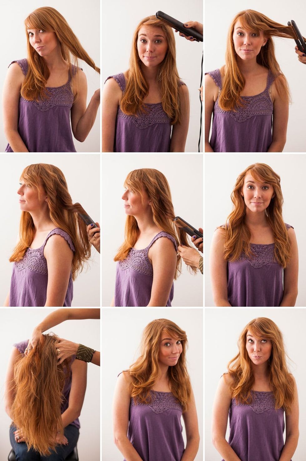 2. Using a curling iron, start at the top section of hair and imagine you are working in a U-shape from one side of your head to the other.
