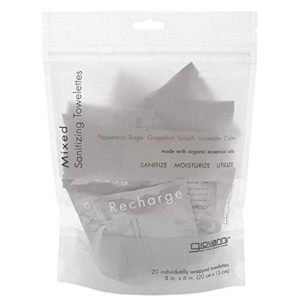I prefer sanitizing towels to hand sanitizers because they can be used to wipe your desk or iPhone screen too and will come in handy once back to the office. These ones are individually wrapped and mixed scents too, so you won't get bored of the same sanitary smell!