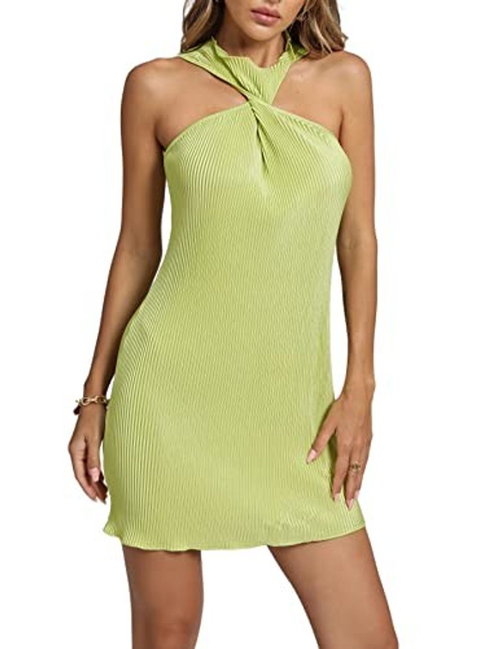See it on AmazonWear this Cantonwalker Women's Cowl Neck Halterneck Slip On Backless Satin Mini Dress Day or Night