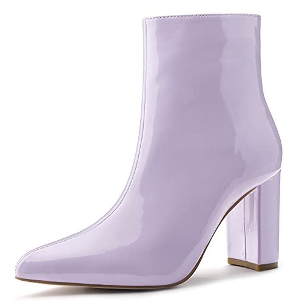 As the icy chill of winter begins to melt away, lavender shades happily regain their hold on society. Pair these Allegra K Women's Chunky Heel Pointed Toe Zipper Ankle Boots with your favorite midi skirt for a pop of color perfect for Spring.