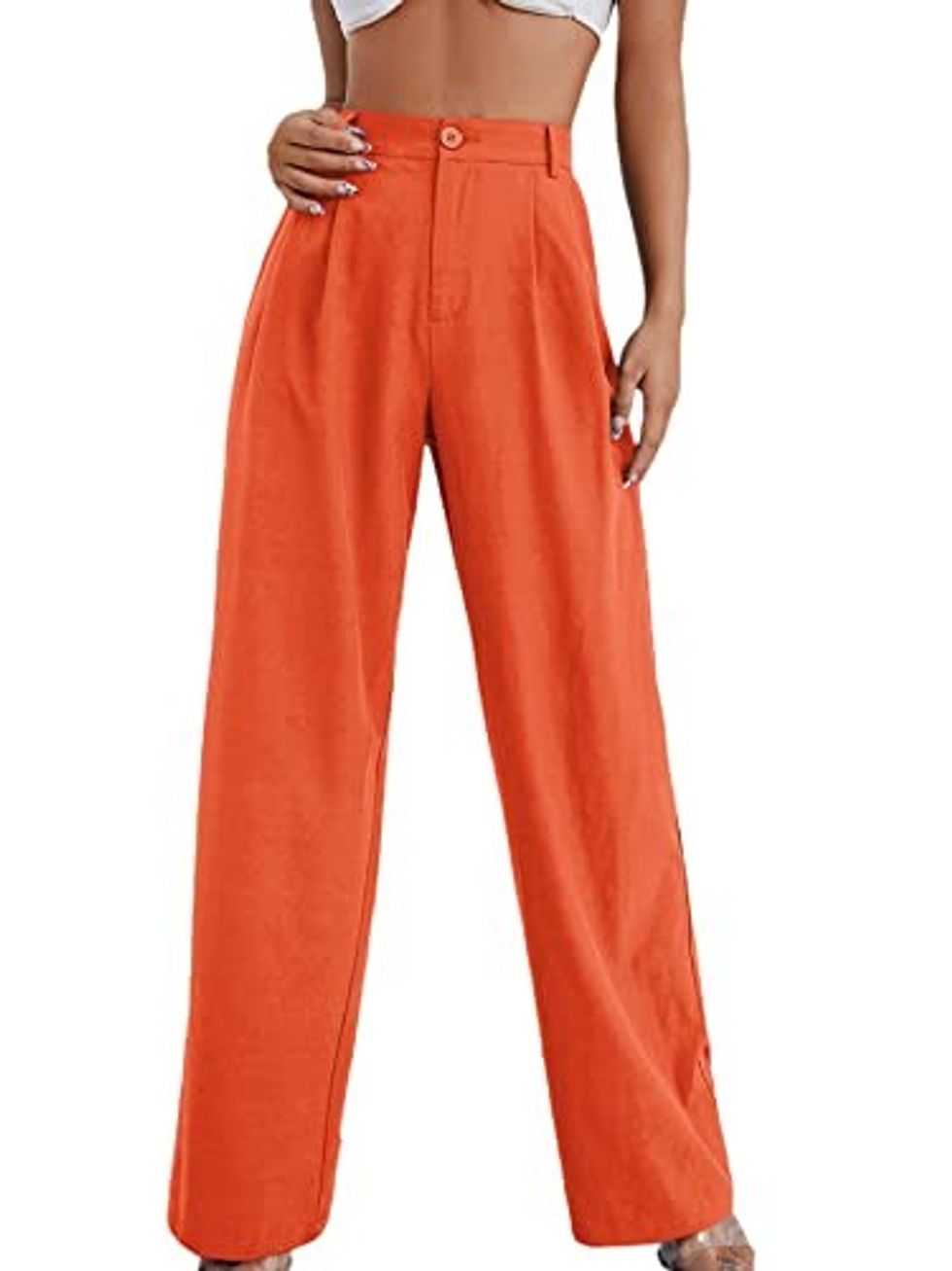 Orange is back whether you like it or not. If you are brave enough to hop on the trend, let me put you on these MakeMeChic Women's High Waisted Palazzo Wide Leg Pants. These burnt orange pants will certainly turn some heads and are great for working hours to happy hours.