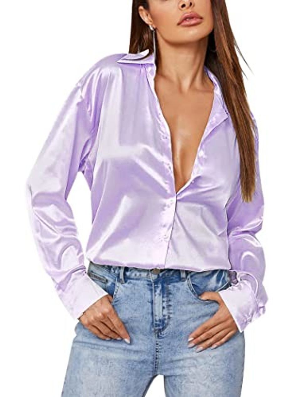 If you're looking to spice up your 9-5, bring some lavender into the office. This Chigant Women's Blouse Satin Silk Shirt is made of high-quality satin, so it is comfortable enough to last the duration of your work day.