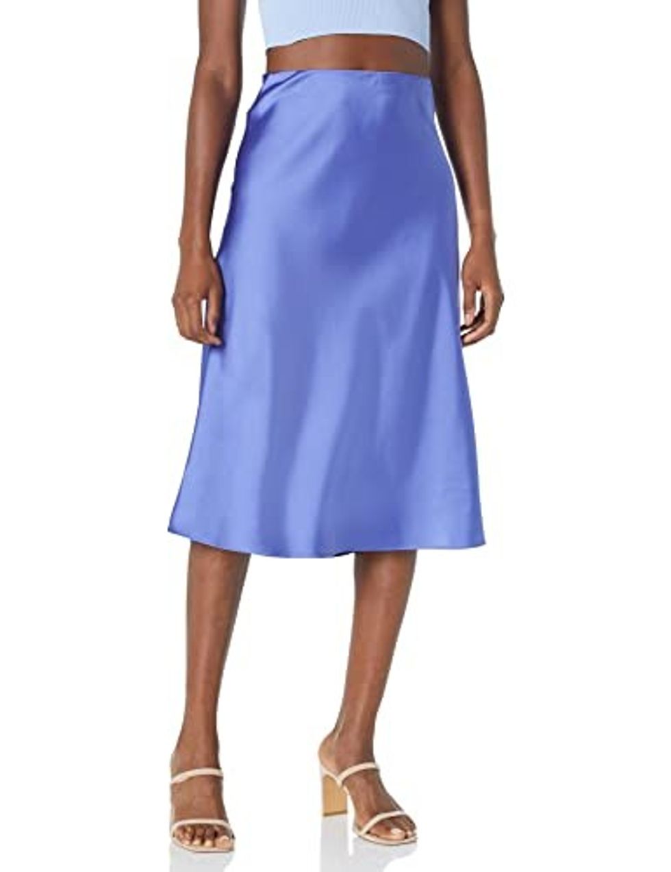 Lavender is in full bloom this Spring. Embrace the trend's return with The Drop Women's Maya Silky Slip Skirt. This silky skirt is made of stretchy fabric, making for a cute and comfortable look that you can wear to the office and then to a weeknight cocktail date.