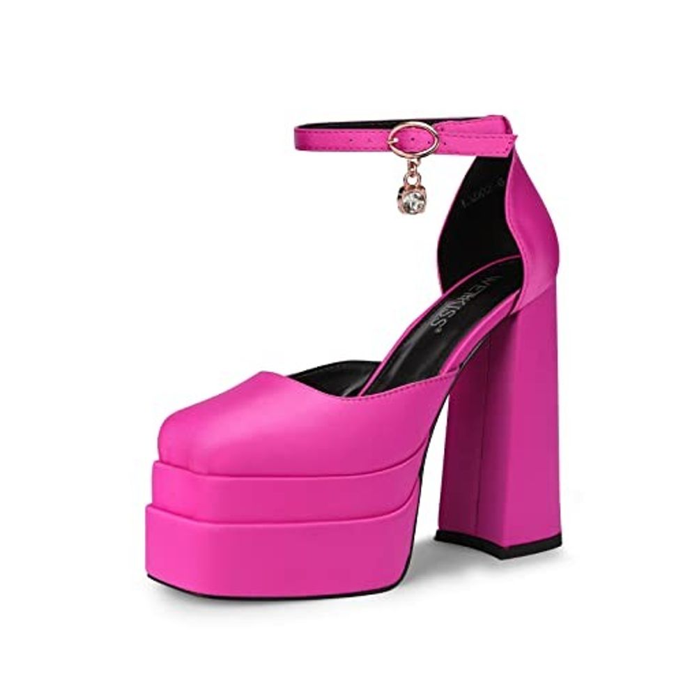 Want to really WOW a crowd? Meet the WETKISS Platform Chunky Heels. These hot pink heels are certain to steal the spotlight and are not for the faint of hearts. Trust me when I say these platforms are tall, meant for experienced heel wearers only.