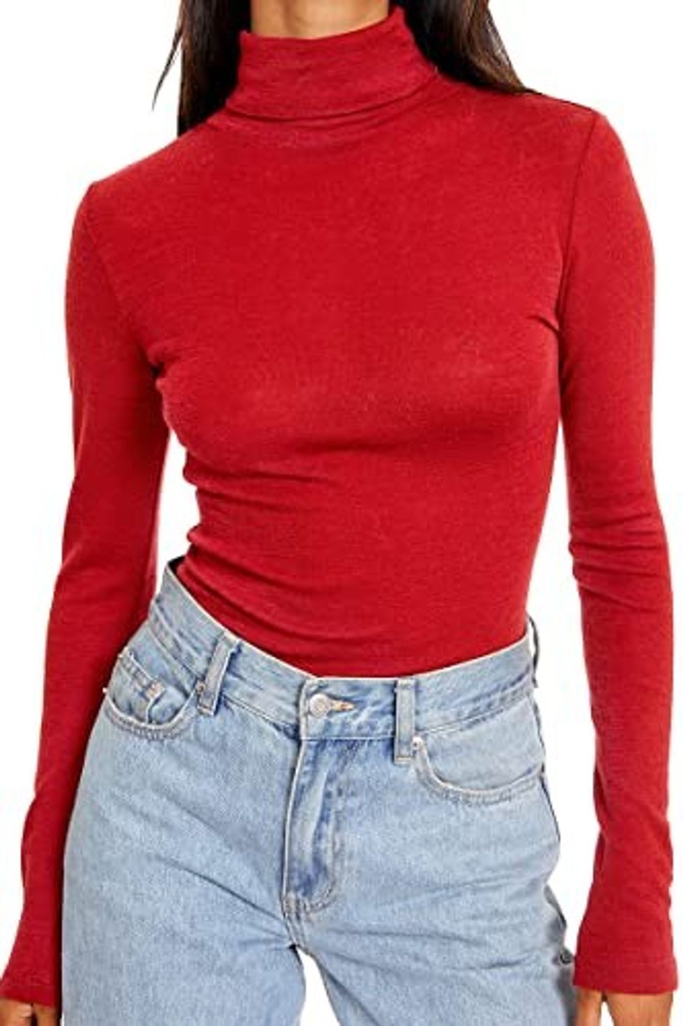 If you're looking for a way to bring some red into your wardrobe, this Trendy Queen Women's Turtleneck Long Sleeve Shirt will check all your boxes. Pair some jeans for a casual look or hit the bars with a black mini skirt, blazer, and some knee high boots.