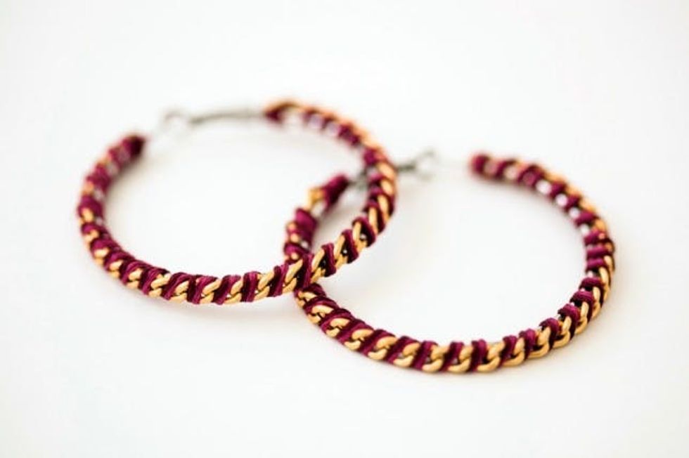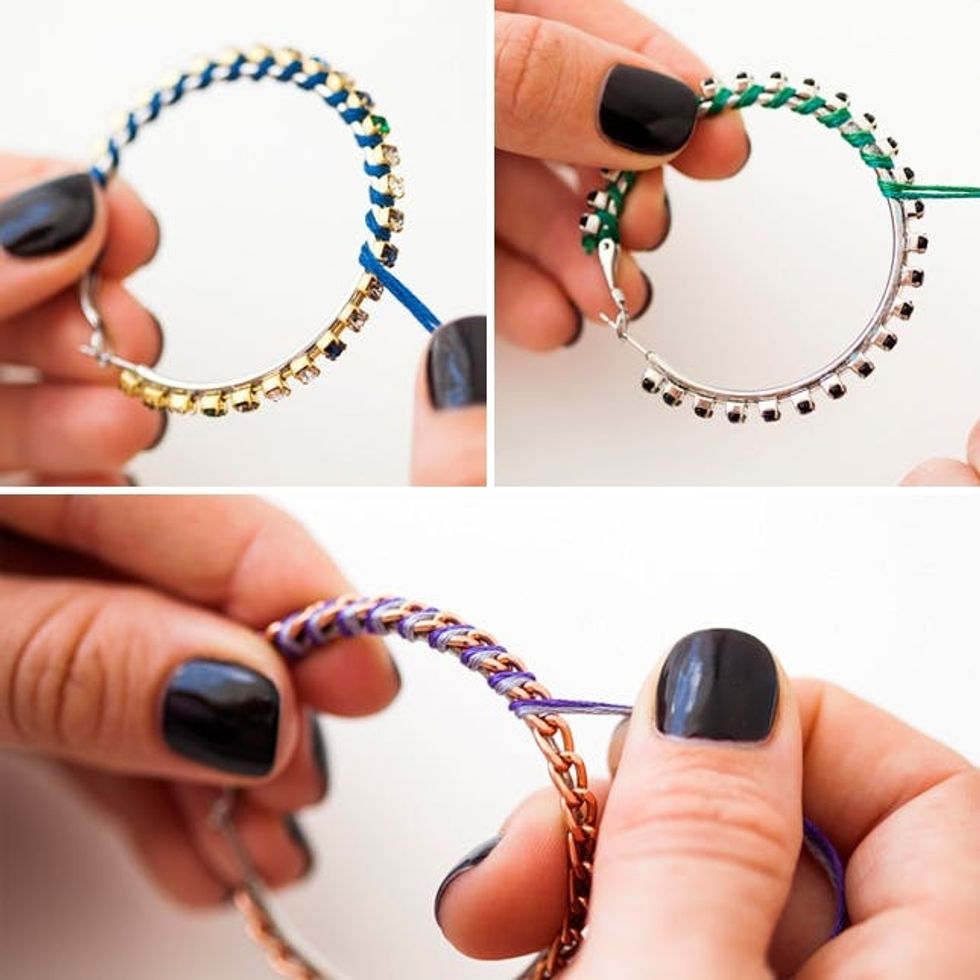 You know we love tricking out a style staple, and hoops are no exception. We’ve decorated them with nail polish, duct tape, hex nuts, and even Mardi Gras beads. Well now we’re taking things one step further and bringing chain and rhinestones into the mix, creating a chic set of statement hoops. Or perhaps, hoop dreams? ;)