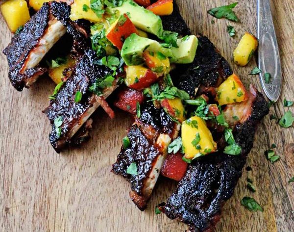 7. Cumin Glazed Ribs With Peach Avocado Salsa: As if cumin-scented dry rubbed ribs brushed with a slick of cumin-lime-honey glaze weren’t tempting enough, these also call for a fresh spicy-sweet salsa to serve alongside. (via In Sock Monkey Slippers)