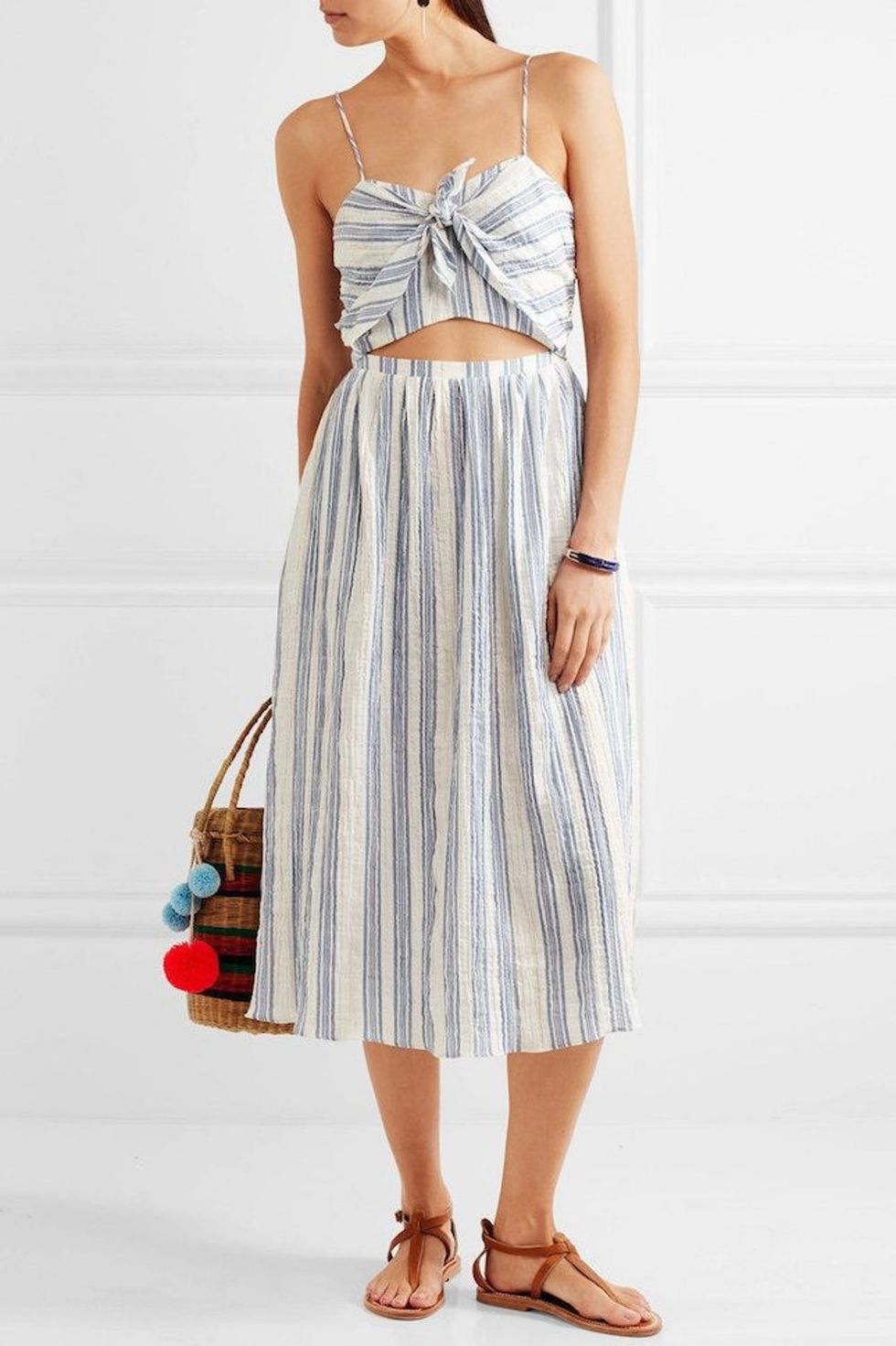 2. With the sunny season comes baring a little skin, of course, and cutouts are a fun way to show a playful peek. This LoveShackFancy Jenna Striped Cutout Cotton-Blend Dress ($207) will work from beach to town and to dinner.