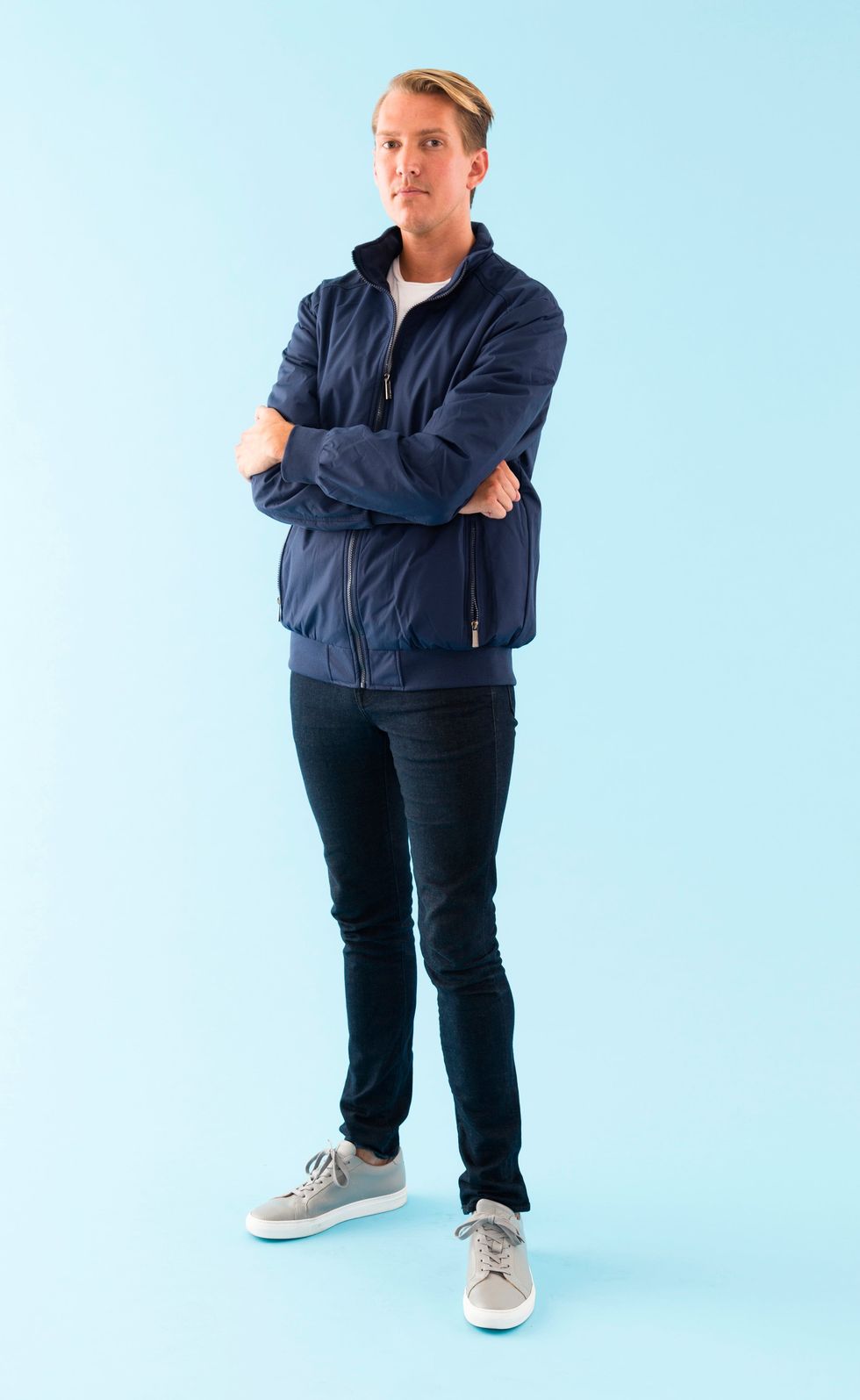 Kevin Keller: This costume, belonging to Betty's BFF and Veronica's new GBF (gay best friend), is comfortable and really straightforward. Just wear your favorite dark denim skinny jeans, a navy windbreaker ($40), a white t-shirt ($7), and grey sneakers.