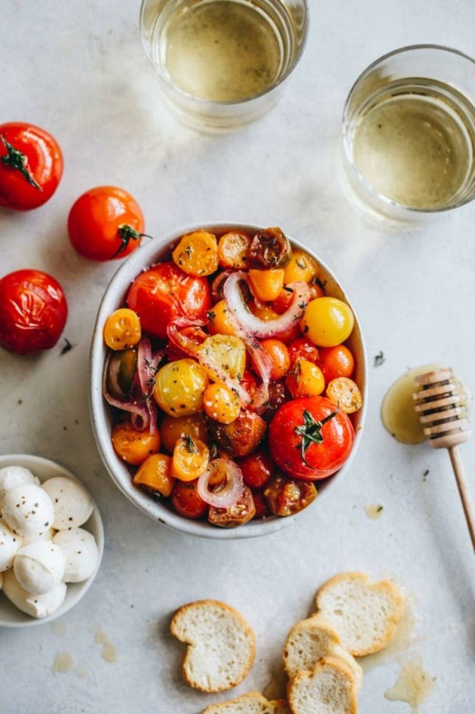 1. Honey Roasted Tomatoes: Juicy and bursting with fresh flavor, honey roasted tomatoes bring a sweetened twist to the side of your plate. (via The Almond Eater)