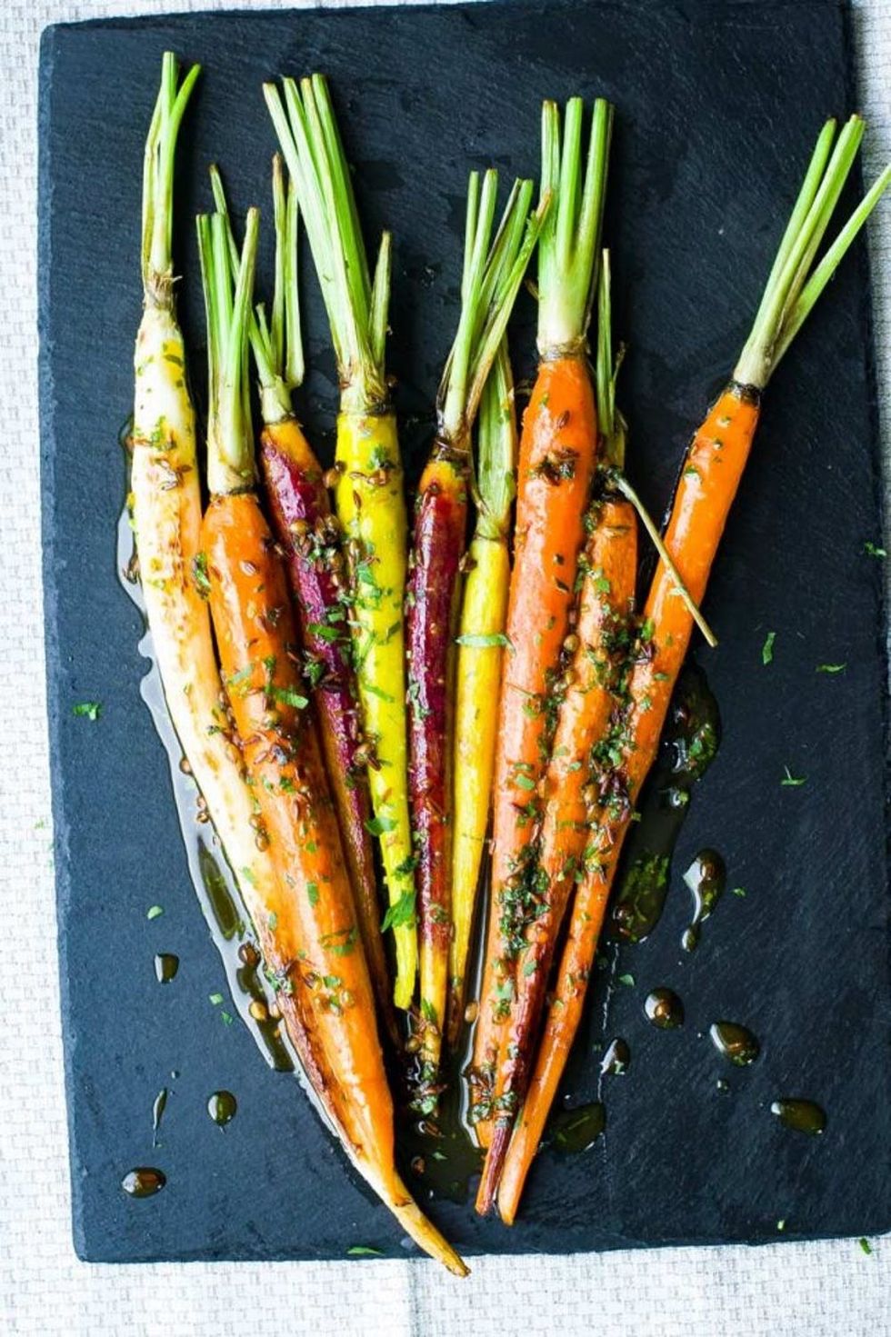 4. Roasted Brown Sugar Carrots: These gorgeous rainbow carrots are roasted to tender perfection and smothered with a sweet ‘n’ spicy brown sugar glaze kicked up with cumin, coriander, and tarragon. (via Wander Spice)