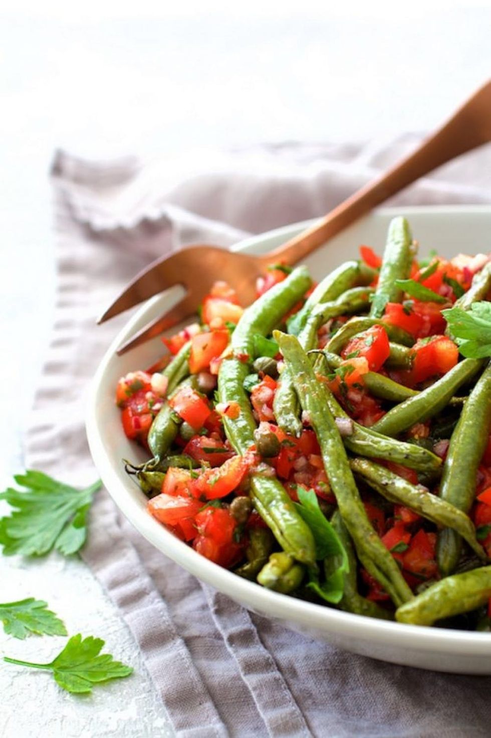 9. Roasted Green Beans With Tomato Caper Relish: This recipe shakes things up with your usual green bean side by adding a tangy and tasty tomato caper relish that will have you craving beans on the reg. (via From a Chef’s Kitchen)