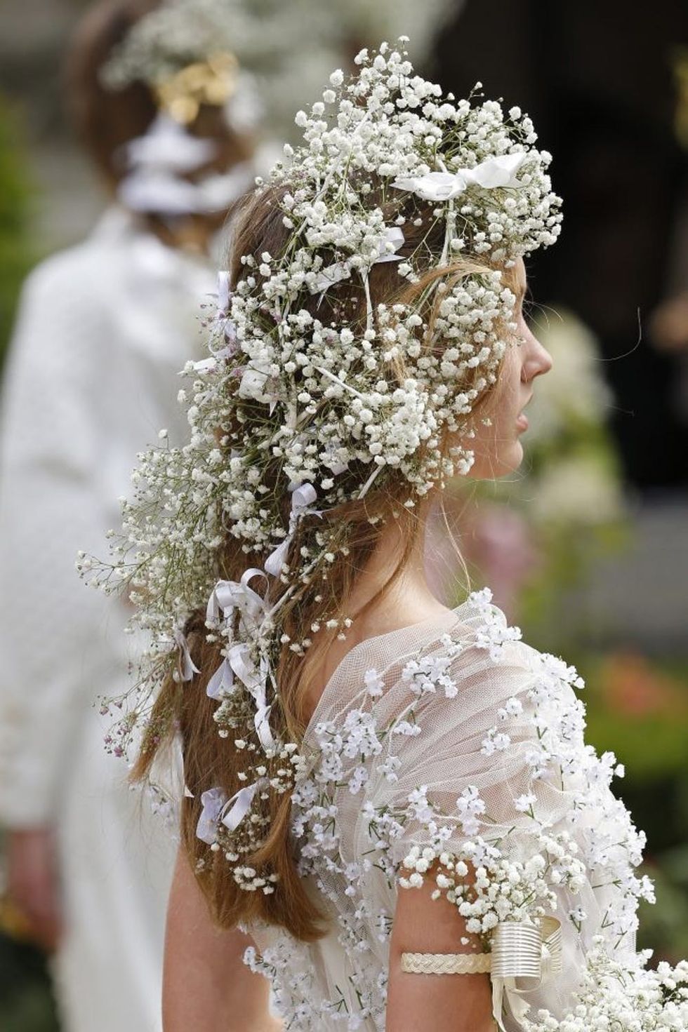 Resurrecting the former music-fest reigning flower crown concept that’s been replaced by some, erm, interesting alternatives in recent times, hairstylist Odile Gilbert transformed piles of baby’s breath into works of art to perfectly complement each of the show’s 50 models’ romantically dreamy gowns.
