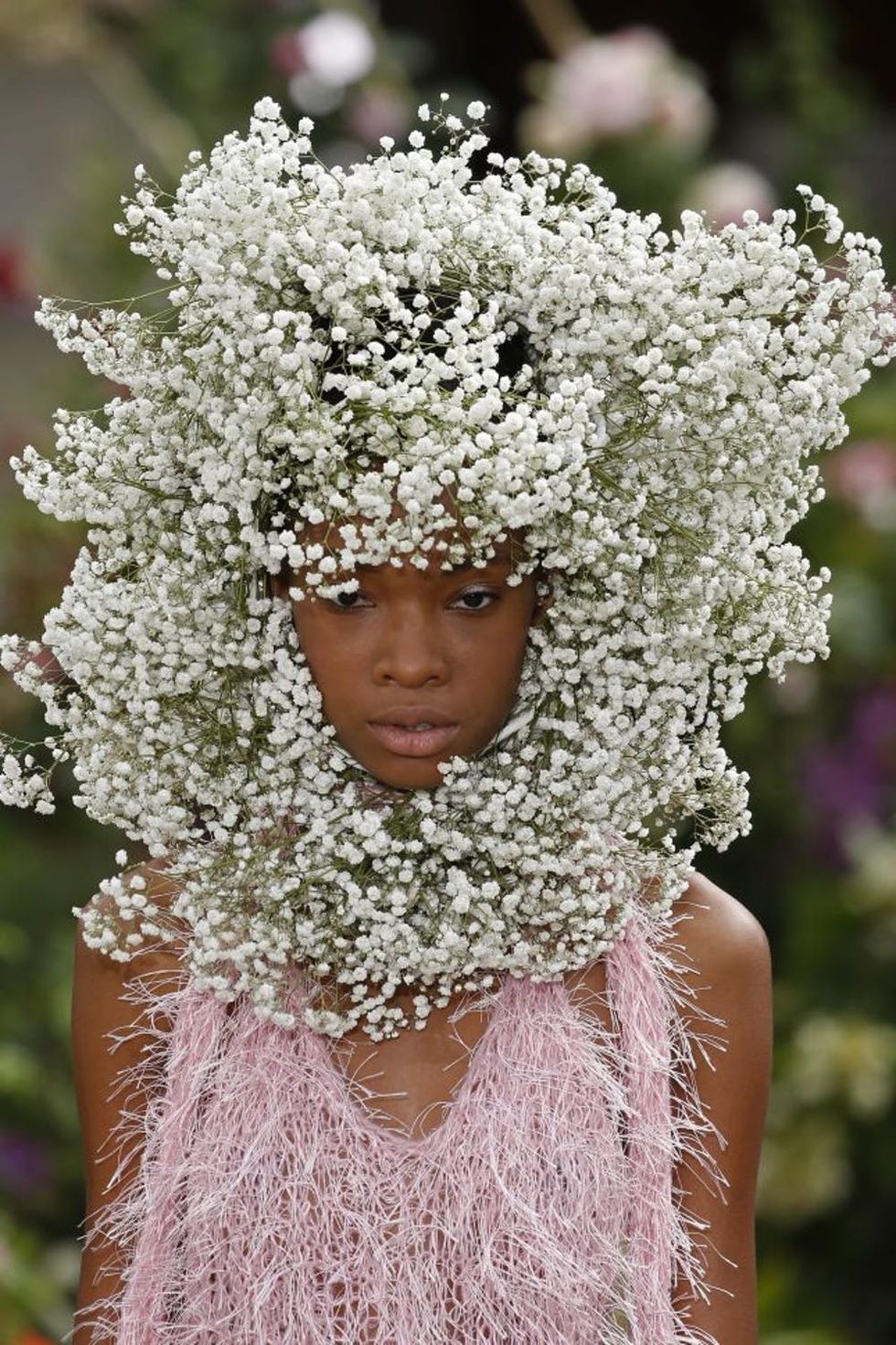 The pièce de résistance, however, came in the form of the floral… head wrap!? that surrounded one model’s entire face.