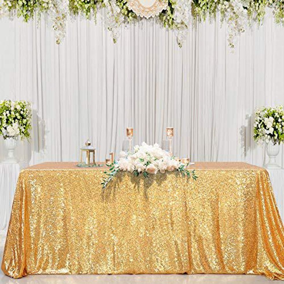 See it on AmazonSparkly Gold Table Cloth Brings The Glam