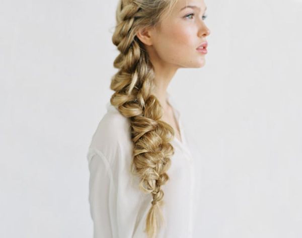 2. Romantic Side Braid: By now we’re all familiar with the fabulousness of the fishtail, but let’s not forget how stunning a French braid-style ‘do can look. This loose side braid is a perfect reminder. (via Once Wed)
