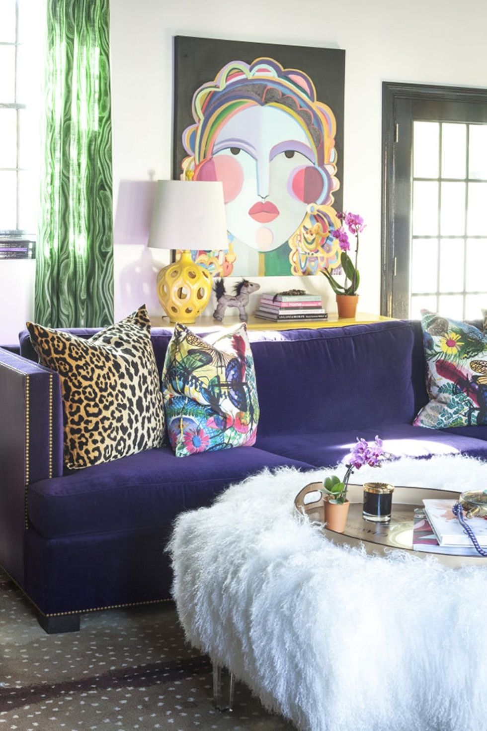 4. Vibrant and Saturated Living Room: You can never have too many patterns and colors, especially when they include fawn-inspired rugs and a large shag ottoman. (via The English Room)