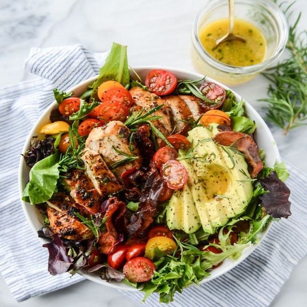 Trust us; you haven’t had chicken until it’s been cooked with rosemary sprigs. To enhance the salad’s greatness, bacon and avocado are added. (via How Sweet It Is)
