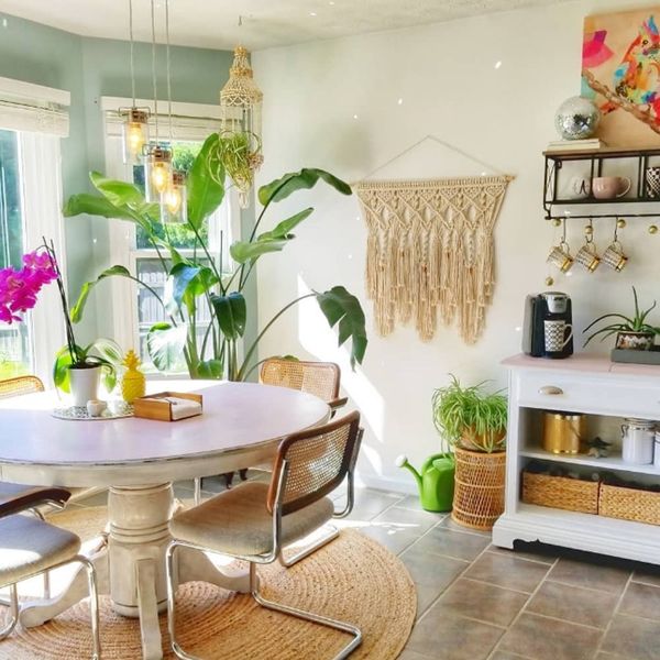 1. Natural Pairings: Pair an earthy rug with some other boho pieces in your home for a relaxed decor moment as soon as you and your guests walk in the door.