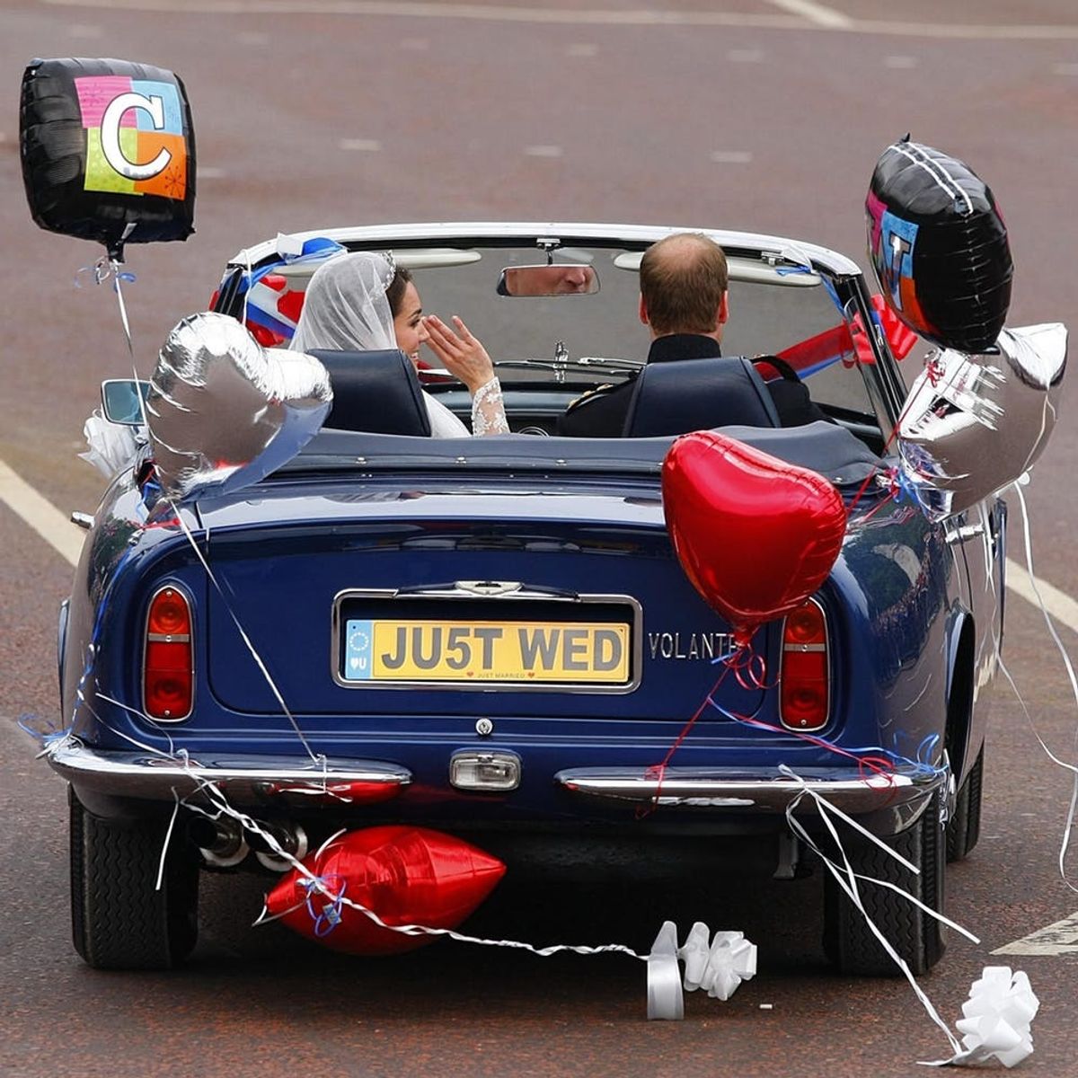 Personal, Informal Touches: Royal weddings aren't exactly casual affairs, but that doesn't mean there isn't room for some informal touches. Following Prince William and Duchess Kate's 2011 nuptials, the couple drove off in a vintage Aston Martin convertible, which was adorned with balloons and streamers. Prince Harry and Meghan Markle's down-to-earth demeanors leave room for something a little less formal to pop up at their wedding too. (Photo via Chris Ison/PA Images via Getty Images)