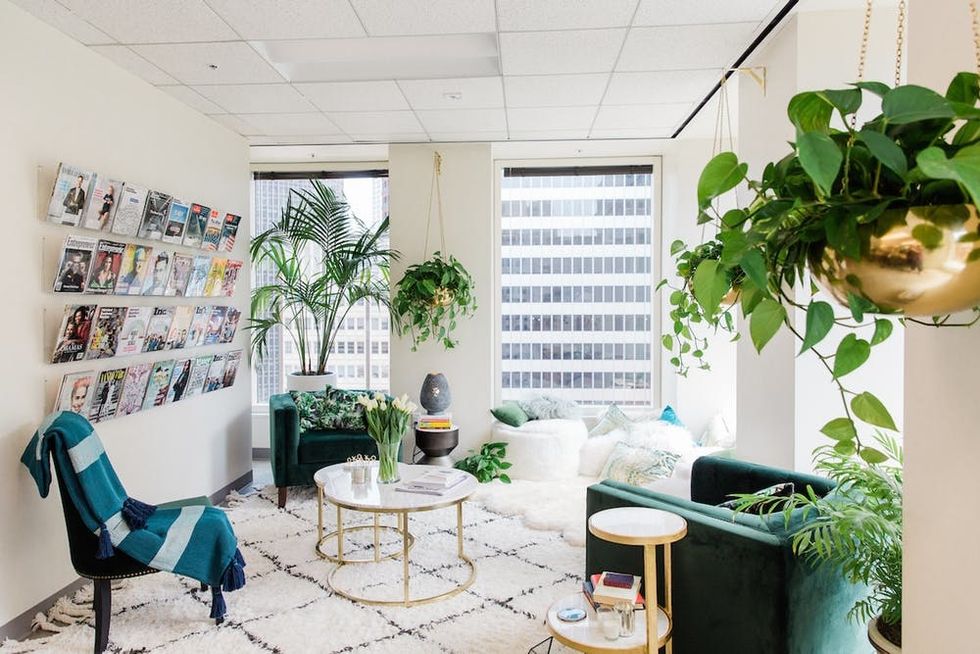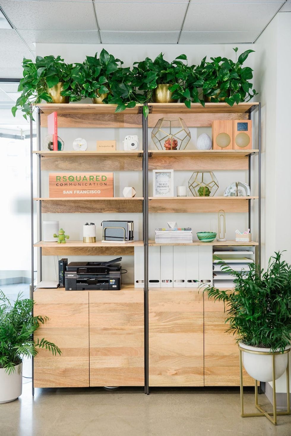 If you had to describe your office in two words, what would they be? Gray cubes? Polar vortex? Whatever you’d pick, we’re betting “Millennial Jungle” wouldn’t be top of the list. However, that’s exactly what Rebecca Reeve, CEO of Rsquared Communication, said when it was time to plan the vibe of the company’s first real office. “I specifically said I’d like a ‘millennial jungle’,” Reeve tells us. “The work we do is very fast-paced and demanding, so creating a tranquil space in contrast to that was important to us.” With help from interior designer Alba Poretti, Reeve handily achieved her mission of a plant paradise in downtown San Francisco, CA. Seriously, look at this space.