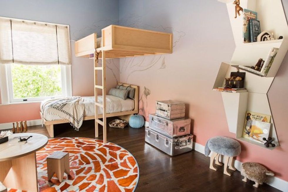 Nature-inspired nurseries and kids’ rooms are all the rage these days. But have you ever heard of a safari-inspired theme? Well, get ready to be *obsessed* over this dreamy new style. Designed by Sherry Hope-Kennedy for the SF Designer’s Showcase, the space looks cool enough to be on any grown-up’s Pinterest board. There’s a pink-to-blue ombre wall that’s seriously swoon-worthy, a tree fort-inspired bunk bed, and quirky accessories like metal trunks that look like something straight out of a Saharan adventure. Scroll down for more pics!
