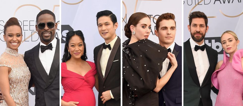 Another awards season date night! Hollywood's biggest stars flocked to the Shrine Auditorium in LA on Sunday, January 27, to celebrate the best TV and film performances of the past year at the 2019 SAG Awards. Click through to see some of the cute couples who graced the silver (in honor of the event's 25th anniversary) carpet! (Photos via Gregg DeGuire/Getty Images for Turner + Frazer Harrison/Getty Images)