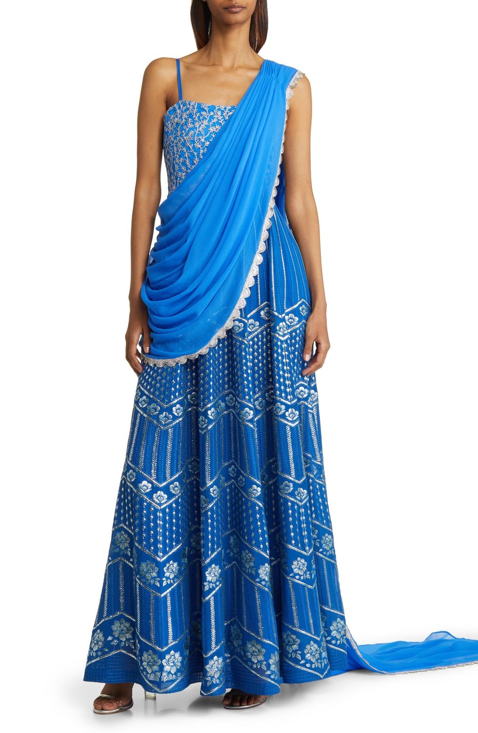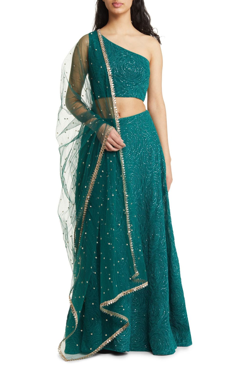 The Raz Floral Embroidered One-Shoulder Lehenga with Dupatta ($420)