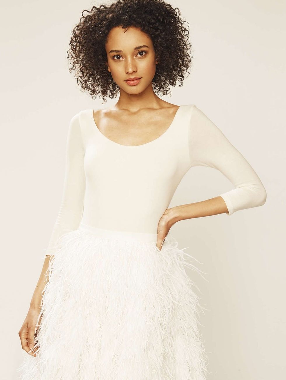WWD reports that the 10-piece collection will feature a mix of bodysuits, gowns, skirts, and a jumpsuit in a range of colors, including “traditional bridal white and black,” as well as blush, poppy, light gray and blue.