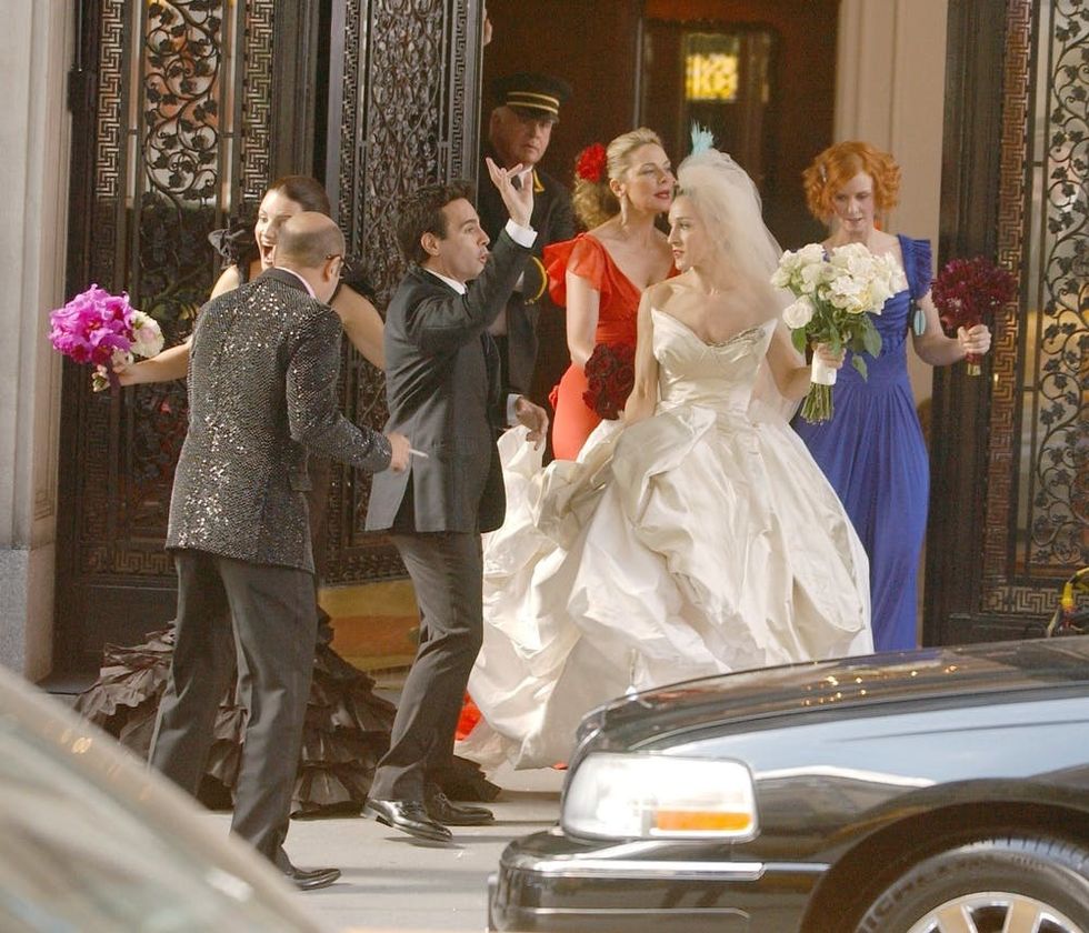 Whether you’re still swooning over the stunning Vivienne Westwood gown that Carrie Bradshaw almost wore to marry Mr. Big, or you prefer the label-less white suit she chose instead, we’ve got the best news for you. Sarah Jessica Parker is teaming up with Gilt on a bridal collection, and it’s perfect for the stylish bride on a budget.
