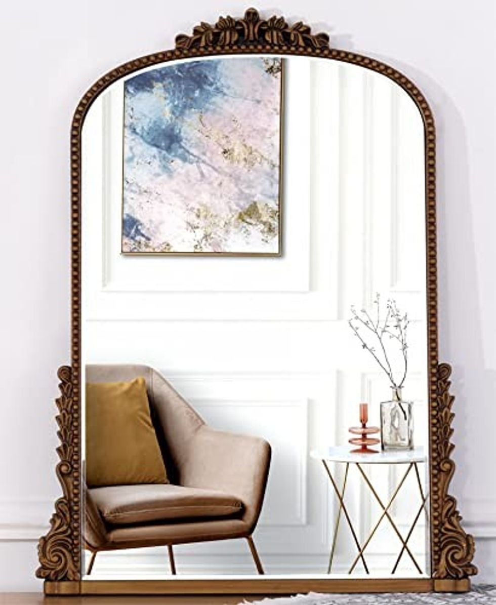 This baroque-inspired brass mirror completes any entryway or bedroom with glamorous vintage charm! It's also a serious dupe for the ever-so-popular but oh-so-expensive Anthropologie version