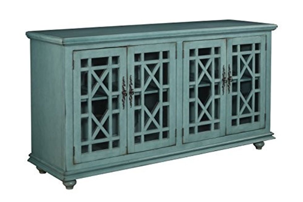 Not all cottage-core decor needs to be old fashioned, this boldly colored TV stand has that good, rustic feel with a modern vibe as well. You really can't beat that teal color.
