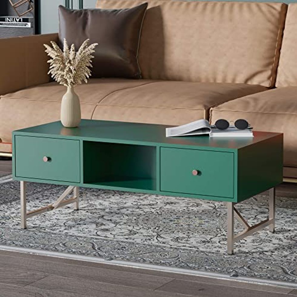 I love that this Modern Coffee Table has additional storage space to hold junk items or extra throw blankets. And you can't beat that green color!