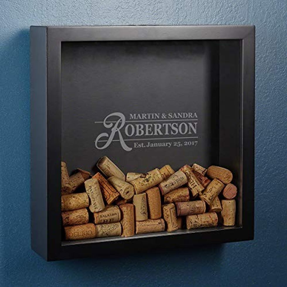 This monogrammed Wine Cork Shadow Box is a creative and stylish way to display wine memories. It's a must-have for wine lovers, making it a top wishlist item and a perfect gift for those who enjoy collecting and cherishing their wine experiences.