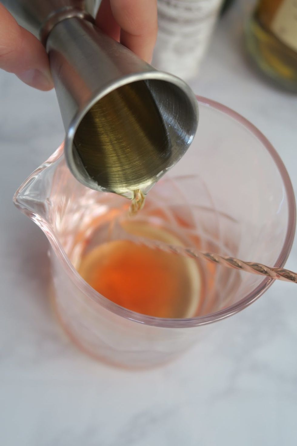 - Chill an Old Fashioned glass or small tumbler in the freezer.