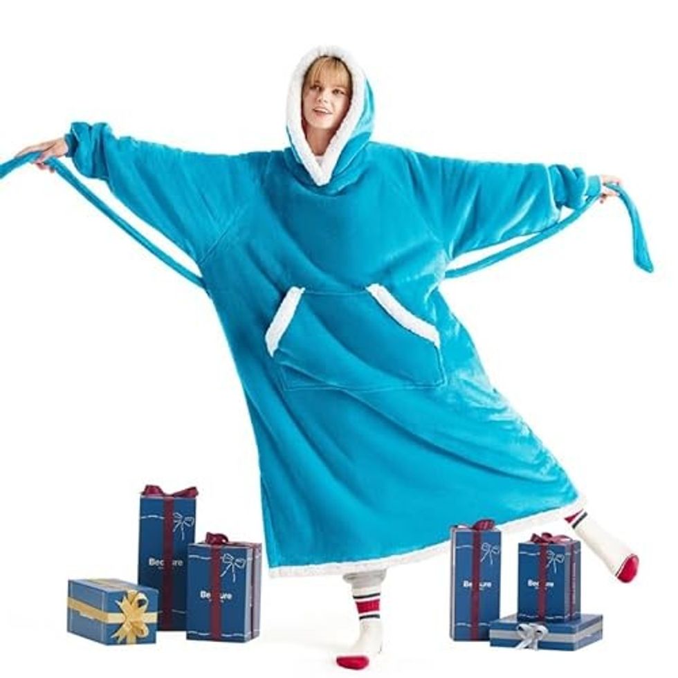 See it on AmazonBedsure Wearable Blanket Hoodie Women Stay Cozy in a Long Sherpa Hooded Blanket