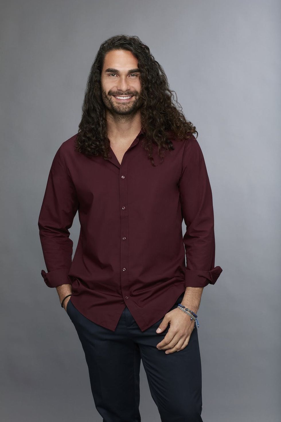 Leo, 31: Action! Leo is from Studio City, California, and he's a stuntman. When he's not on set, he's working for his family's construction business. He's also been growing his hair for 10 years. (Photo via ABC/Craig Sjodin)