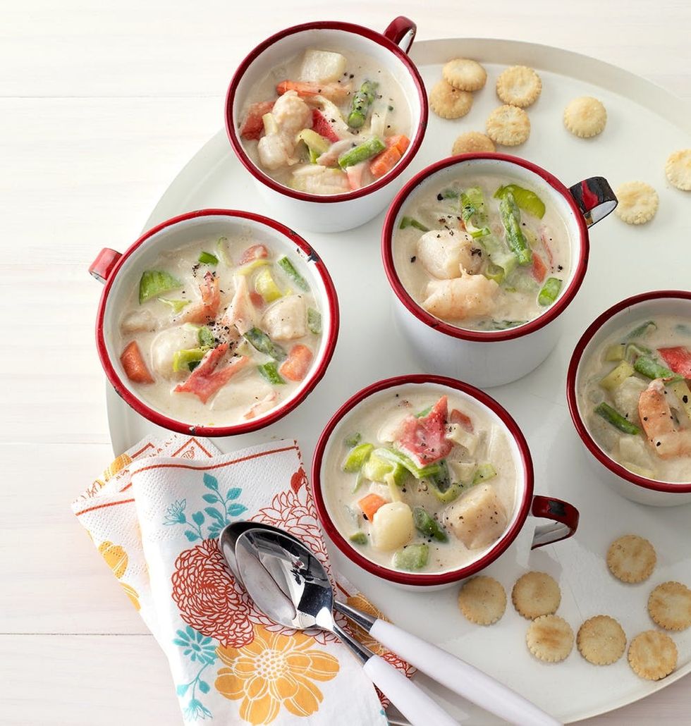 If you haven’t had them before, oyster crackers are like little round or hexagonal saltines that you sprinkle into soup. They’re especially popular served with seafood chowder in New England (oyster stew calls for oyster crackers!). When you add them to your bowl, they soak up a little bit of broth but stay crunchy inside.
