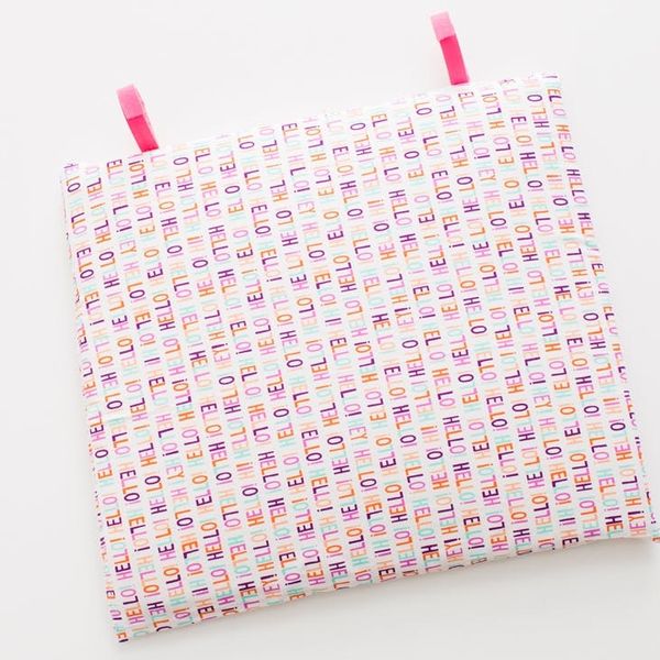 7. Sew around two of the open edges (the side with the fold doesn't need to be sewn). Be sure to sew across the VELCRO® Brand ONE-WRAP® Pink Straps to secure them.