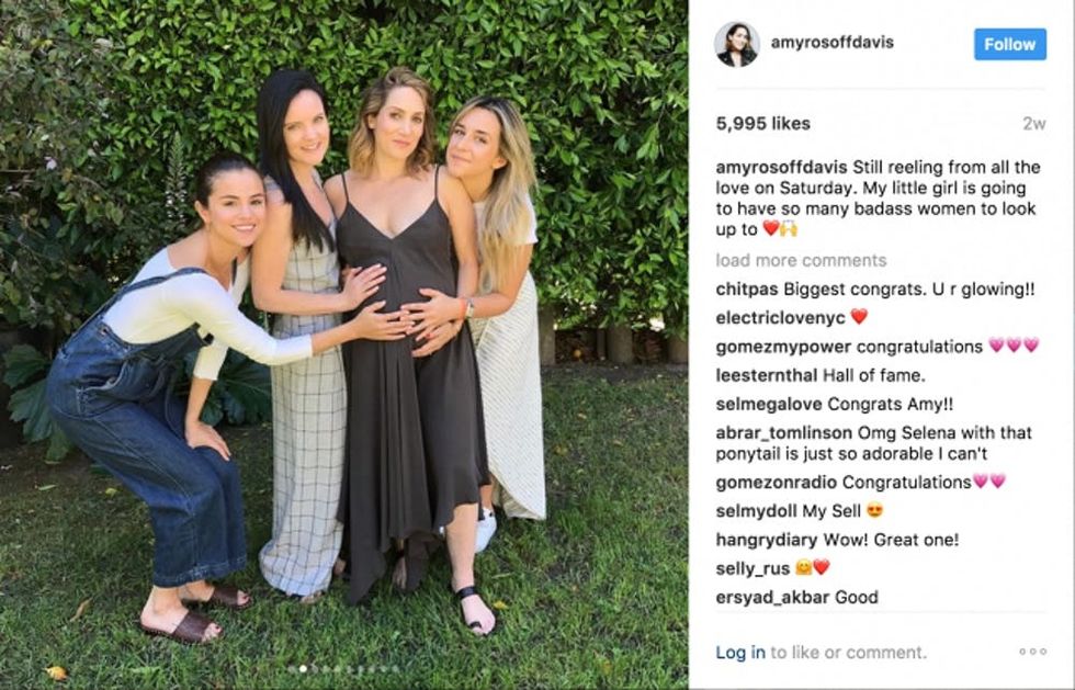 Gomez attended her trainer Amy Rosoff Davis’s garden baby shower wearing Free People’s Strappy Denim One-Piece ($108) with a long sleeved white t-shirt and brown Ash Playa Sandals ($198). If you want to try this trend for yourself without breaking the bank, Overstock has a style of overalls similar to Gomez’s that are very budget-friendly: Hadari Women’s Sleeveless Denim Jumpsuit ($50).