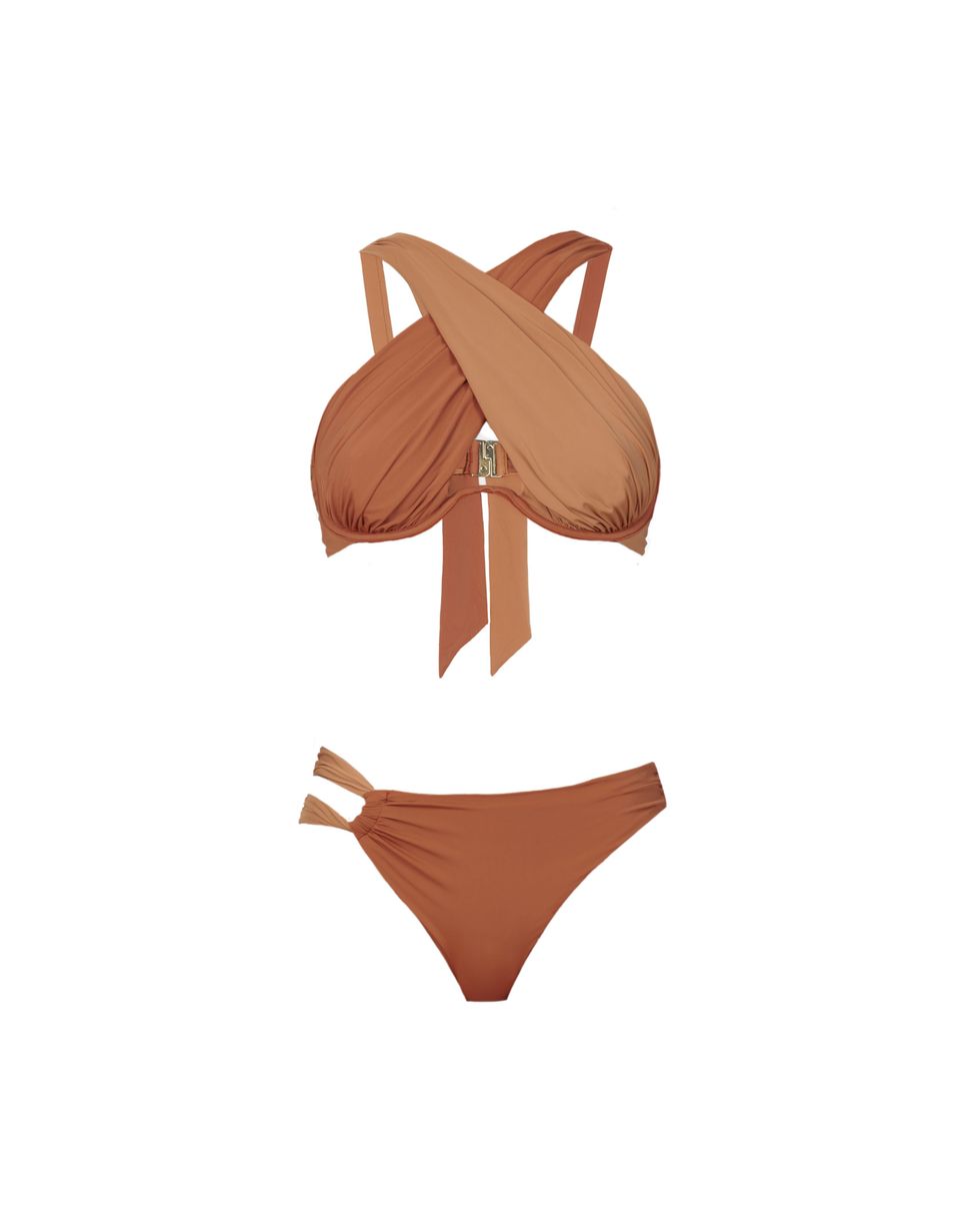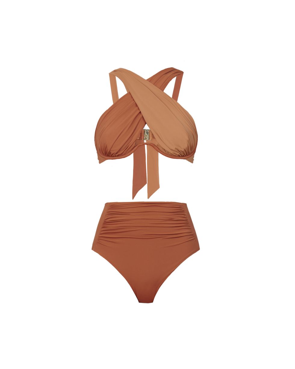 Tan Cross Front Bikini Top ($132) and Tan High Waisted Bikini Briefs ($66)