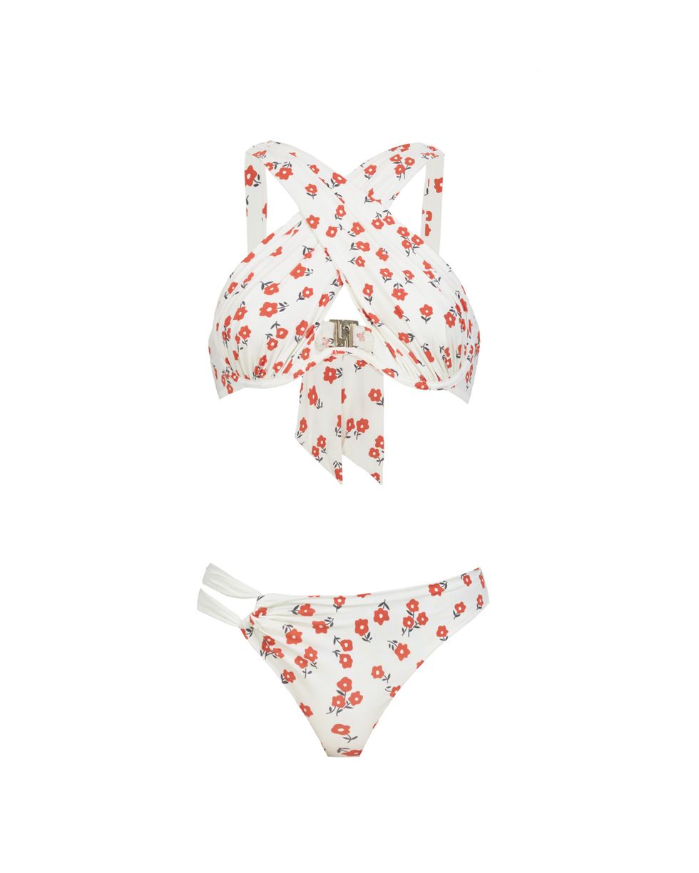 Floral Printed Cross Front Bikini Top ($132) and Floral Printed Ruched Bikini Briefs ($80)