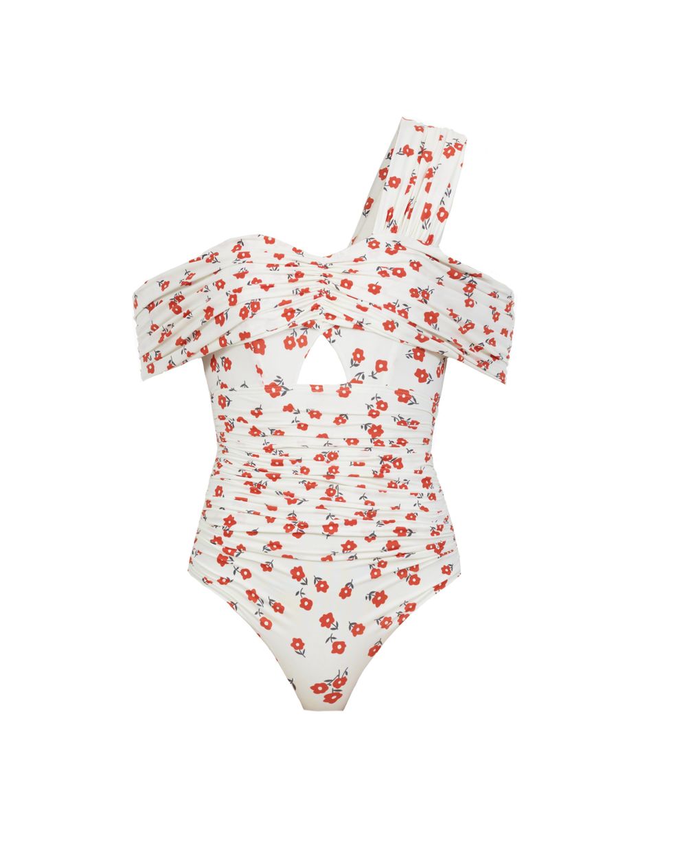 Floral Printed Draped Swimsuit ($230)