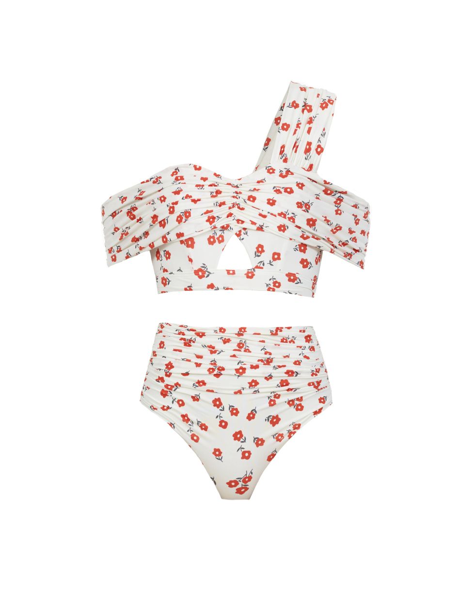 Floral Printed Draped Bikini Top ($238) and Floral Printed High Waisted Bikini Briefs ($80)